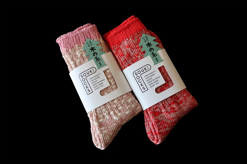 奈良県の主要産業である靴下生産と吉野林業を結びつけた特別な製品で、地域の歴史と環境への配慮を伝えるユニークな靴下です。